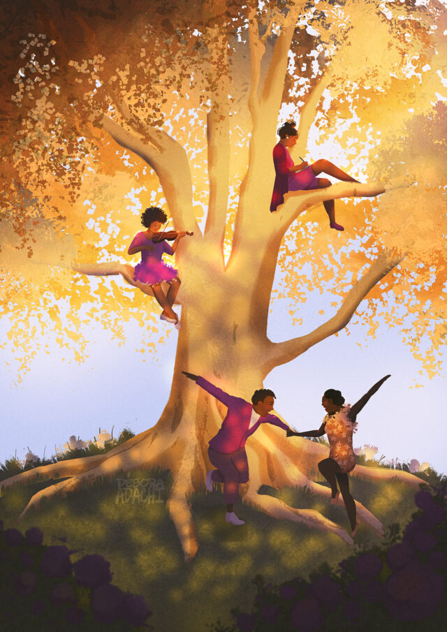 She is predominantly a digital illustrator but loves to sketch with traditional media. Her artwork is whimsical, painterly and impressionistic. Her diverse cultural background inspires her in creating illustrations that celebrate diversity. Family, belonging, heritage and identity are themes that she’s drawn to.